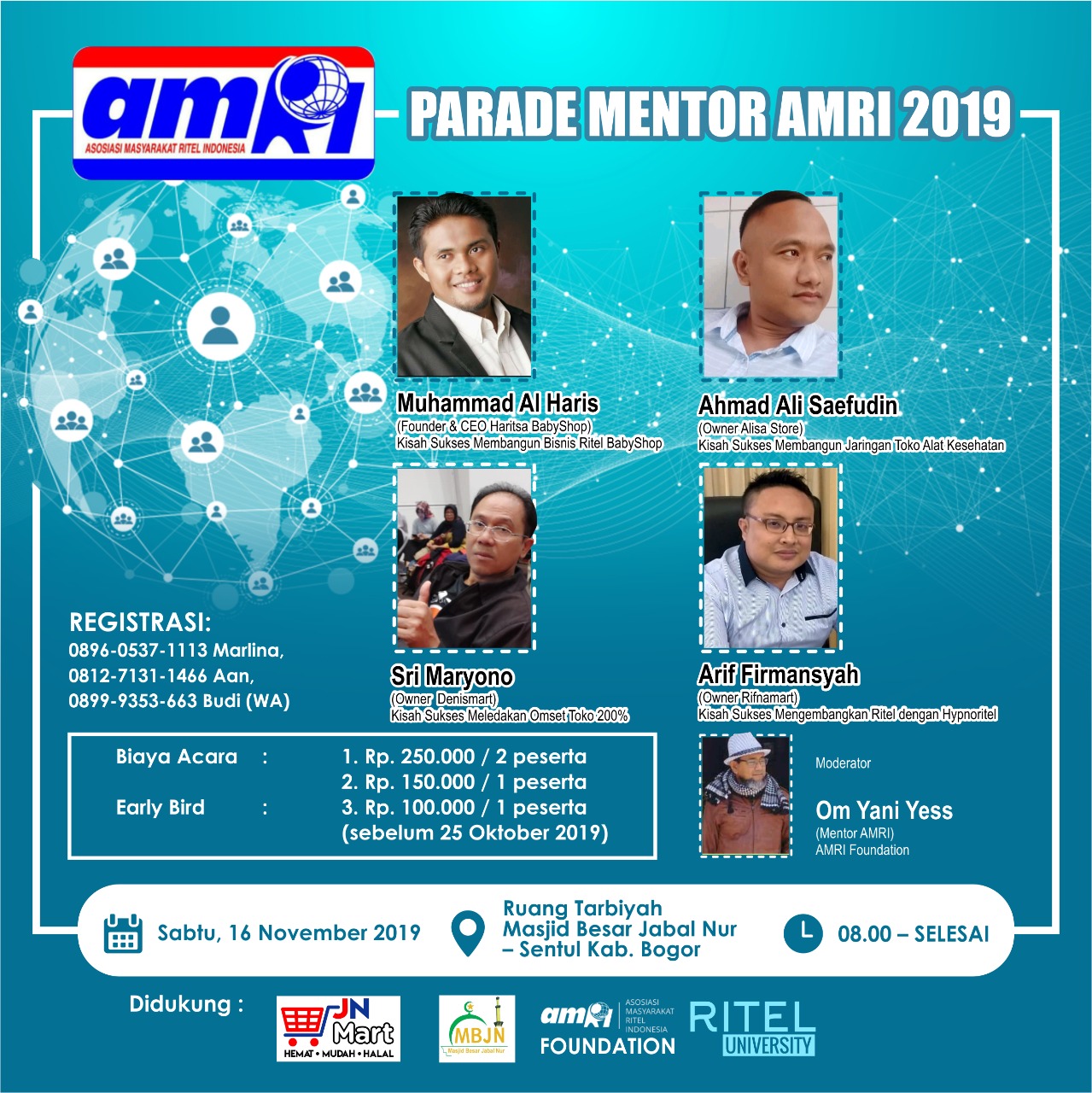 Di dalam acara ini akan ada acara Parade Mentor AMRI. Pembicaranya ada Muhammad Al Haris, Ketua AMRI Medan. Al Haris adalah pemilik Haritsa Baby Shop. Mentro AMRI Nasional ini akan memberikan materi tentang “ Kisah Sukses Membangun Bisnis Ritel Baby Shop”.