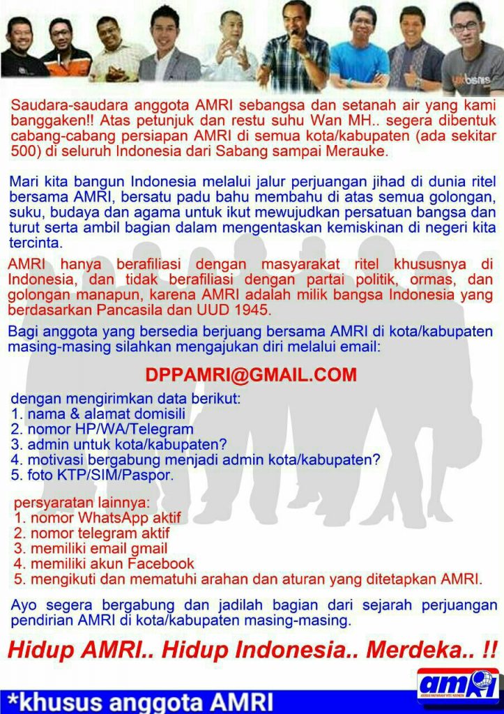 Posted at 13:11h, 08 AprilKeren bener sudah berada dimana-mana, semoga niat ikhtiar yg baik dan lurus dari semua Pengurus AMRI untuk memajukan ekonomi masyarakat Indonesia diridhoi Allah SWT, aamiin